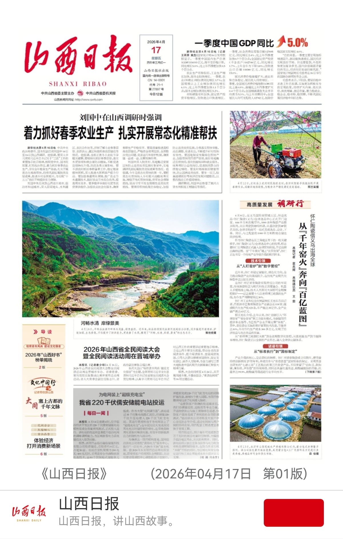 (山西日報2026年4月17日頭版)